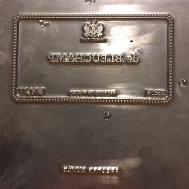 Embossed labels are created by using pressure to permanently shape material creating both a raised and recessed relief. The technique creates a visually stunning label which is also pleasing to the touch. Embossing is achieved by using two plates with the desired pattern etched into the faces to form a stamp; these plates are then placed above and below the label surface. A high load is applied and the resulting pressure reshapes the label material permanently to form the desired design. Embossing is often successfully combined with metallic label styling.
